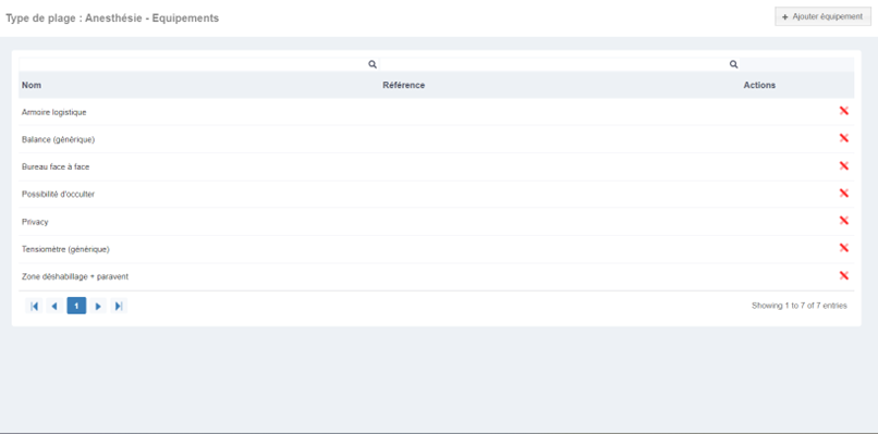 Il est possible d’ajouter des équipements en cliquant sur "Ajouter équipement" et en sélectionnant ceux-ci, ou bien de supprimer un équipement en cliquant sur la croix.