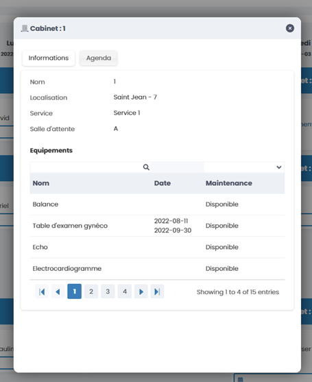 Vous pouvez retrouver les détails du box en cliquant sur le numéro de celui-ci. Une fenêtre va s’ouvrir avec différentes informations ainsi que les différentes occupations sous forme de liste.