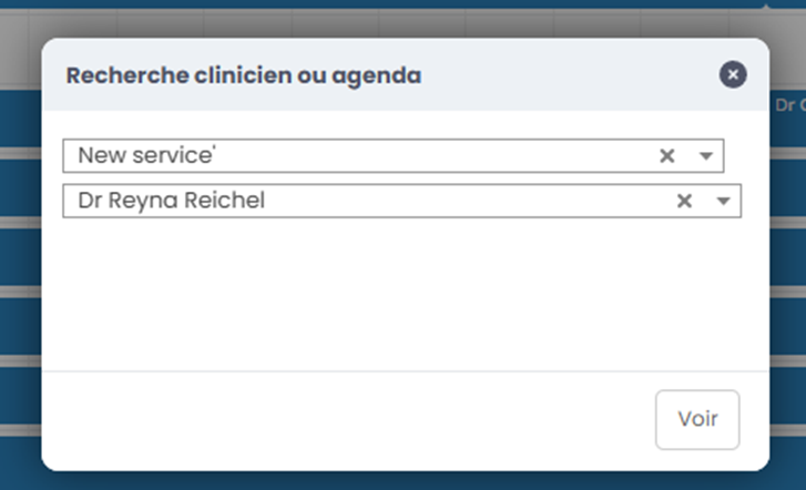 Sélectionnez le clinicien en tapant son nom ou en le sélectionnant dans la liste, et cliquez sur « Voir ».