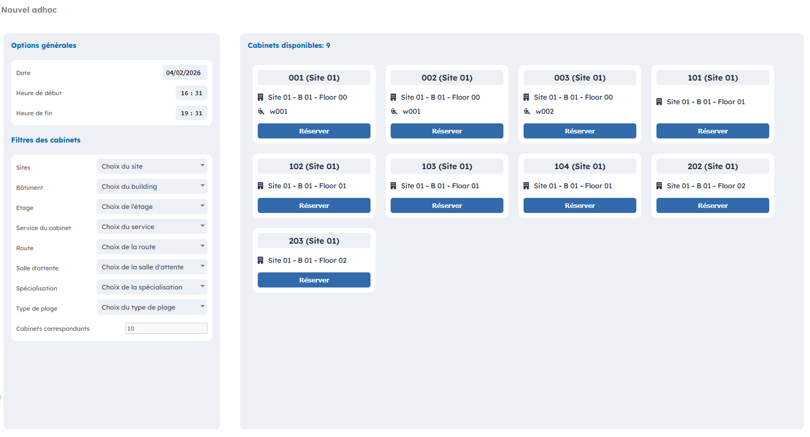 Dans le cas où vous souhaitez réserver un cabinet pour un évènement exceptionnel, cliquez sur « Réservation AD-HOC ».