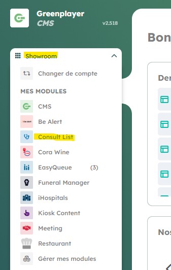 Pour arriver au module BMS, cliquez dans le menu déroulant à gauche et sélectionnez "Consult List"