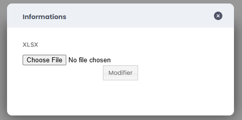Une fenêtre s'ouvre pour importer un fichier, cliquez sur "choose file" et importer le fichier en XLSX.