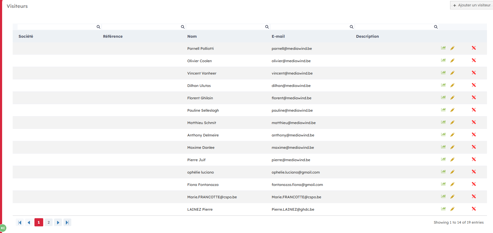 Lorsque vous cliquez sur "voir les visiteurs", vous accédez à la vue détaillée du visiteurs avec son nom, e-mail, nom de la société, ses références éventuelles, et une description au besoin.