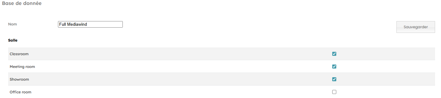 Cela vous donne la possibilité de cocher ou décocher les salles concernées. Cliquez sur "Sauvergarder" pour confirmer.