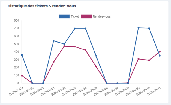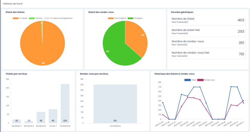 Le tableau de bord Easyqueue vous permet d’avoir une vue d’ensemble sur les données du module.