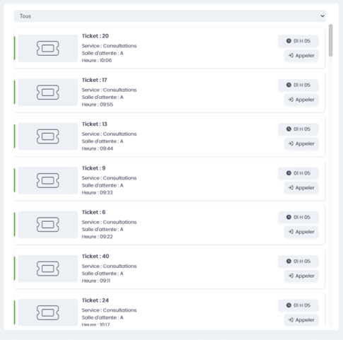 À droite de la colonne des détails de l’entretien en cours se trouve la liste des tickets en attente.