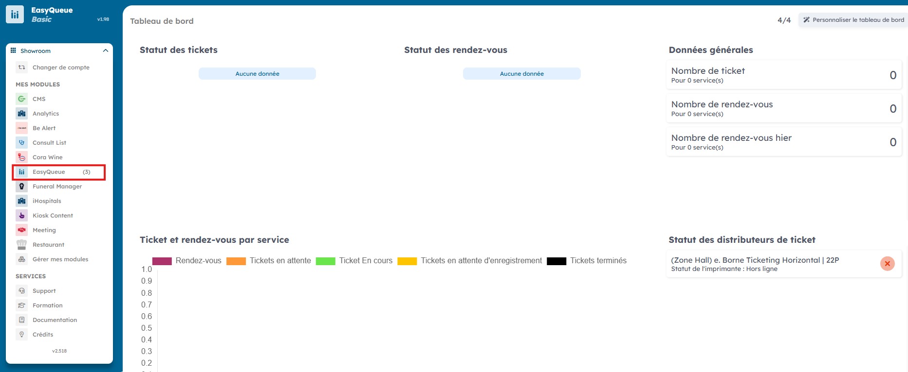 Selon vos restrictions, accéder à EasyQueue via le menu déroulant à gauche.