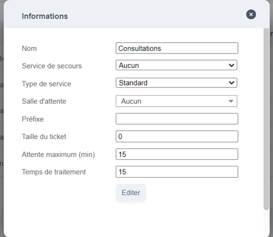 En cliquant sur « Editer », vous pouvez modifier les informations du service.