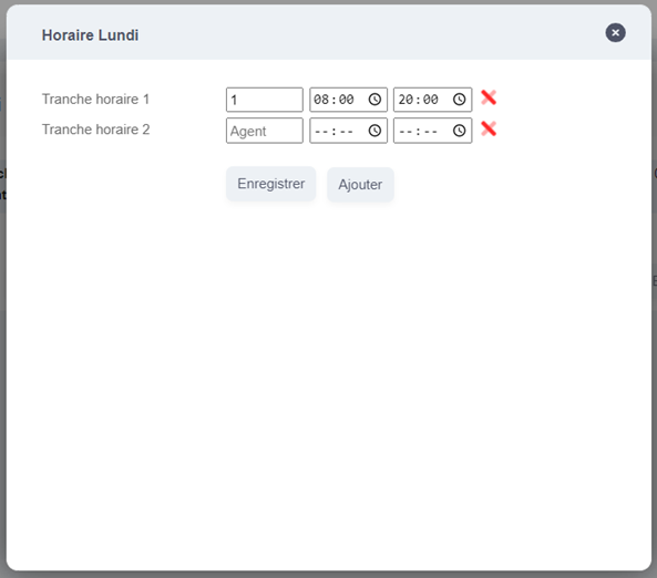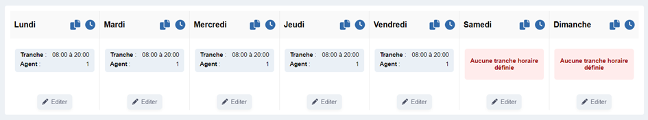 Il est possible d’éditer les tranches horaires de chaque jour ainsi que le nombre d’agents en cliquant sur « Editer ».