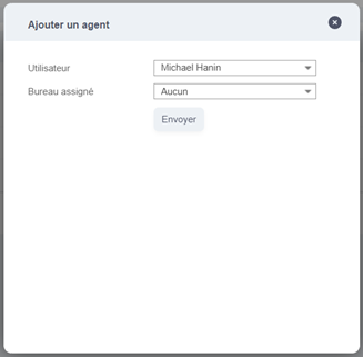 Choisissez l’utilisateur que vous souhaitez insérer comme agent et assignez-lui un bureau si nécessaire. Cliquez ensuite sur « Envoyer ».