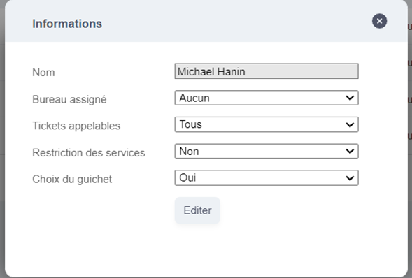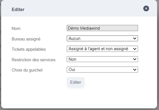 En cliquant sur « Editer », vous pouvez modifier les informations de l’agent.