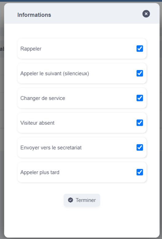 Cocher les boutons auxquels l’agent aura accès, et cliquez ensuite sur « Terminer ».
